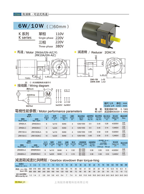 K系列2GN10K可逆式馬達6W/10W(60mm)