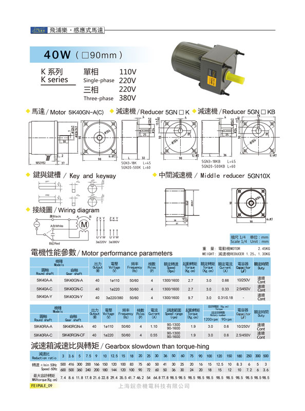 K系列5GN40K感應式馬達40W(90mm)