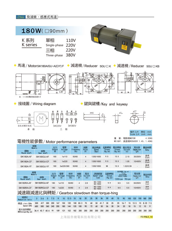 K系列5GN20K感應式馬達180W(90mm)