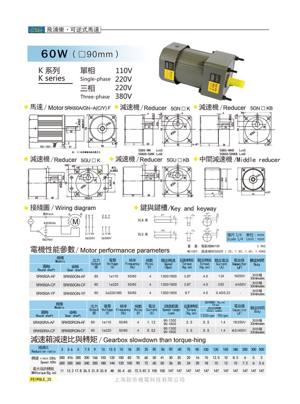 K系列5GN12.5K可逆式馬達60W(90mm)
