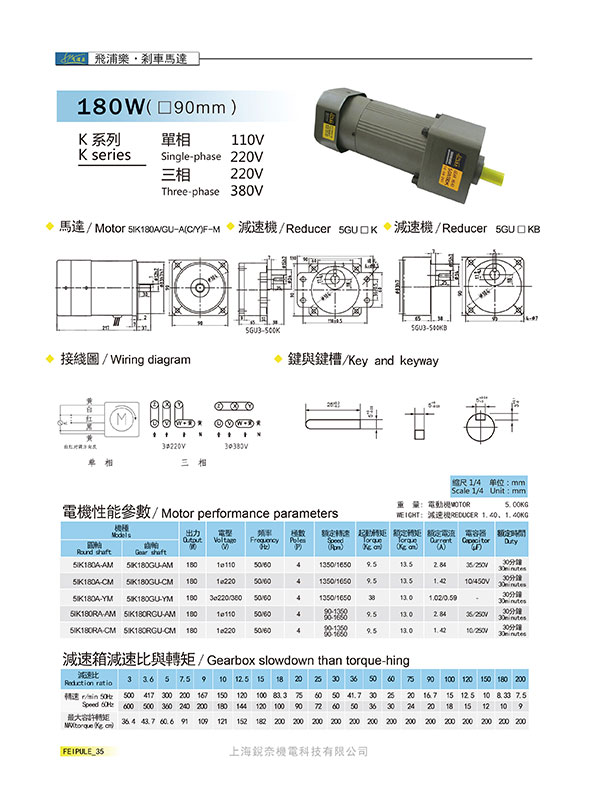 K系列5GN180K剎車馬達180W(90mm)