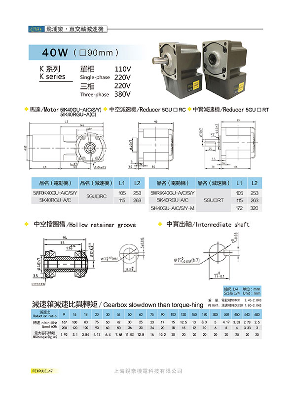 K系列5GU60RC/RT直交軸減速機40W(90mm)