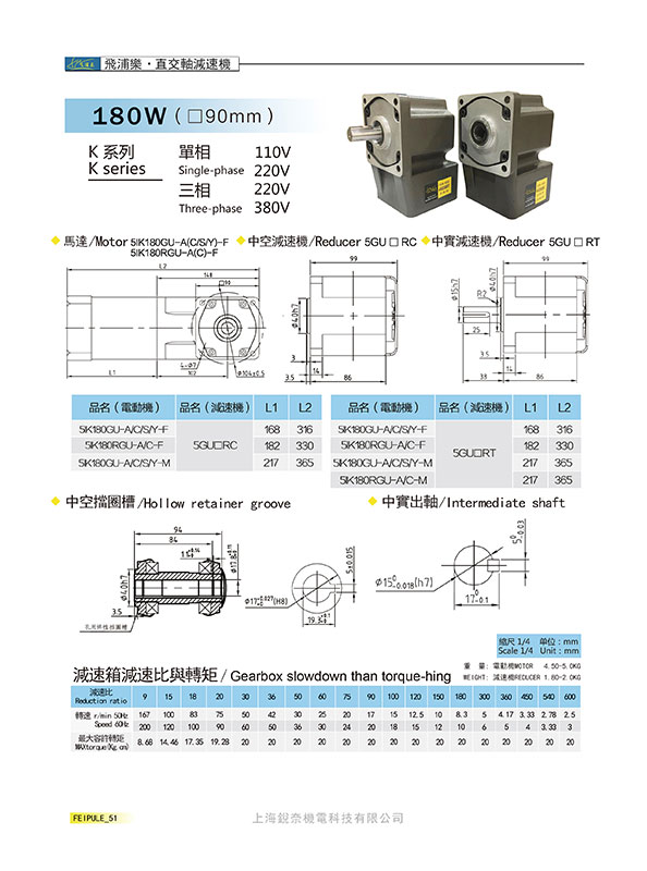 K系列5GU60RC/RT直交軸減速機(jī)180W(90mm)